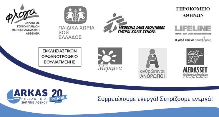 Κάθε χρόνο ενισχύουμε τη δράση Κοινωφελών Ιδρυμάτων και ΜΚΟ. Έτσι και το 2018 η οικογένεια της ARKAS Hellas στάθηκε δίπλα στους Οργανισμούς. Συμμετέχουμε ενεργά! Στηρίζουμε ενεργά!