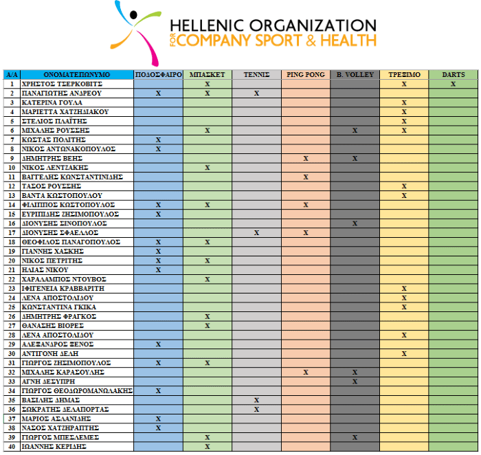 Με χαρά σας ανακοινώνουμε ότι φτάσαμε τις 40 Συμμετοχές στους 8ους Εθνικούς Αγώνες Εργασιακού Αθλητισμού!