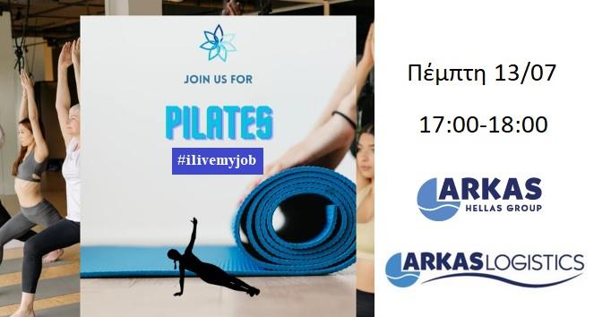 Aγαπητοί συνάδελφοι, Το Pilates είναι μια μορφή άσκησης που εστιάζει στην ισορροπία, τη στάση του σώματος, τη δύναμη και την ευελιξία. Την Πέμπτη 13/07, ώρα 17:00-18:00, υποδεχόμαστε την Pilates Instructor Καλλιόπη Αντιμαχίτη και ο χώρος του #ilivemyjob μετατρέπεται σε χώρο Pilates Class για τις γυναίκες του Ομίλου Arkas Hellas και Arkas Logistics. Παρακαλούμε όσες θα συμμετέχετε στο Pilates Class να δηλώσετε συμμετοχή στο cct@arkas-hellas.gr μέχρι την Τρίη 11/07. Όποιο και αν είναι το επίπεδο φυσικής κατάστασης, μπορείτε να ξεκινήσετε με το mat pilates (pilates σε στρώμα) είναι ένα ομαδικό πρόγραμμα, το οποίο προσφέρει μια σειρά ασκήσεων, οι οποίες θα βελτιώσουν κυρίως τον πυρήνα του σώματος (κοιλιακό και πίσω) και ταυτόχρονα ολόκληρο το σώμα.