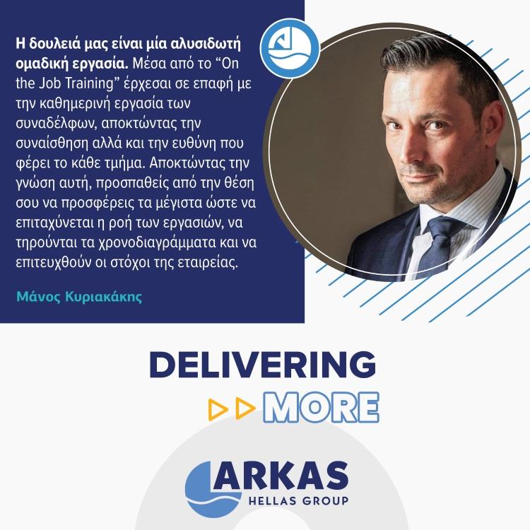 Οι συνεργάτες μας είναι πρωτίστως οι Άνθρωποί μας και αυτοί που κάνουν τη διαφορά με σκοπό την αποτελεσματική λειτουργία και την μέγιστη παροχή υπηρεσιών του Ομίλου ΑRKAS Hellas. Μέσω του προγράμματος on the Job Training, επενδύουμε στην αύξηση των δεξιοτήτων και την απόδοση του Ανθρώπινου Δυναμικού μας.