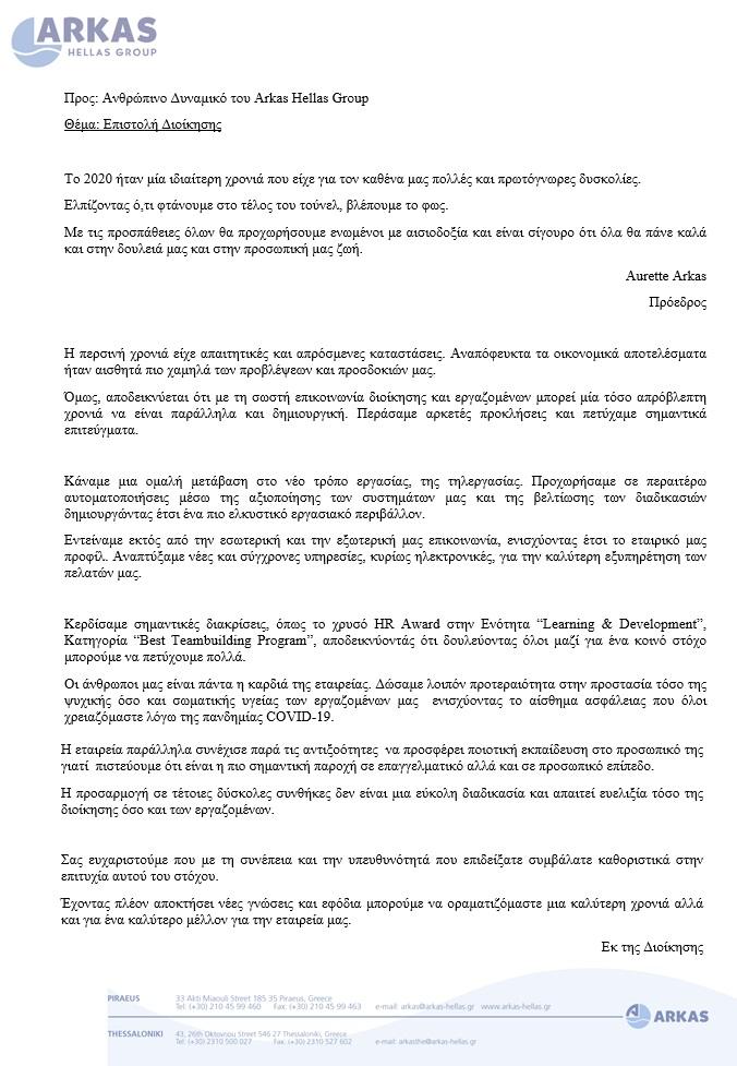 Επιστολή Διοίκησης 2020-21
