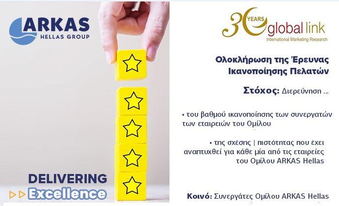 Θα θέλαμε να σας ενημερώσουμε ότι ο Όμιλος Arkas Hellas, ολοκλήρωσε τη διεξαγωγή έρευνας ‘Ικανοποίησης & Προσδοκιών’ των συνεργατών του, σε συνεργασία με την εταιρεία έρευνας αγοράς Global Link .