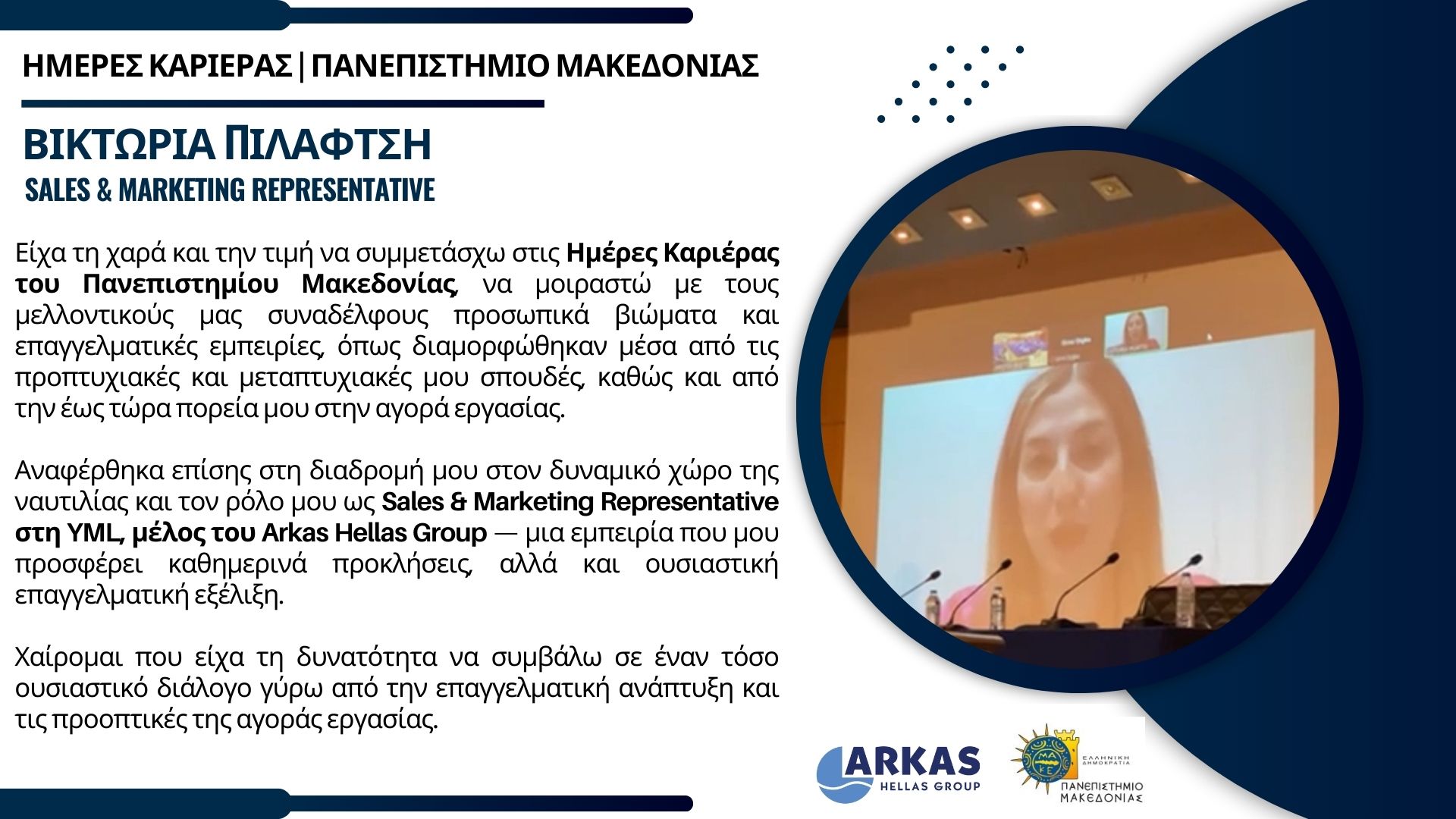 | Οι Ημέρες Καριέρας του Πανεπιστημίου Μακεδονίας είναι η μεγαλύτερη και δυναμικότερη δράση του ιδρύματος που υλοποιείται κάθε χρόνο με στόχο τη σύνδεση των τελειόφοιτων και μεταπτυχιακών φοιτητών και νέων αποφοίτων του με την Αγορά Εργασίας. |