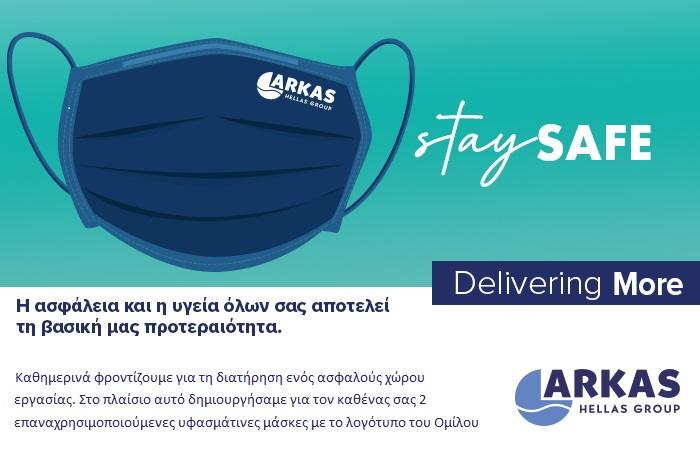 Καθημερινά φροντίζουμε για τη δημιουργία ενός ασφαλούς χώρου εργασίας. Στο πλαίσιο αυτό δημιουργήσαμε για τον καθένα σας 2 επαναχρησιμοποιούμενες μάσκες με το λογότυπο του Ομίλου Arkas Hellas Group.