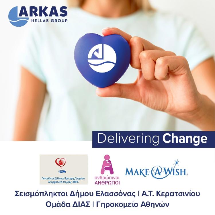 Το τελευταίο εξάμηνο η Arkas Hellas, προσέφερε έμπρακτα βοήθεια σε σεισμόπληκτους συμπολίτες μας, σε ηλικιωμένους και ευπαθείς ομάδες και σε μικρά παιδιά που πάσχουν από ανίατες ασθένειες.