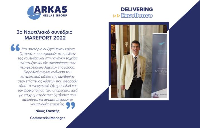 Στο 3ο Ναυτιλιακό συνέδριο “MAREPORT 2022” παρευρέθηκε ο κος Νίκος Σακατής, Commercial Manager της εταιρείας Αrkas Hellas, στο οποίο συζητήθηκαν καίρια ζητήματα που αφορούν στο μέλλον της ναυτιλίας.