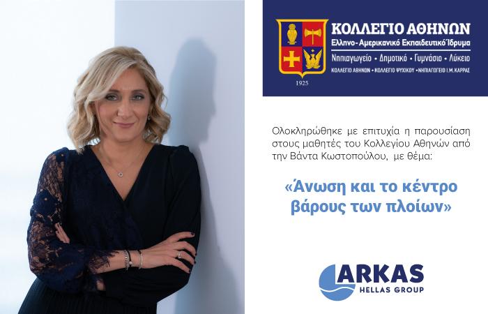 Τη Δευτέρα, 21 Φεβρουαρίου 2022, η κα Κωστοπούλου, ως γονέας μαθητή, πραγματοποίησε παρουσίαση στο Κολλέγιο Αθηνών με θέμα την άνωση και το κέντρο βάρους των πλοίων, στο πλαίσιο επεξεργασίας της διαθεματικής ενότητας «Οι δυνάμεις επηρεάζουν την κίνηση των αντικειμένων και των ανθρώπων».