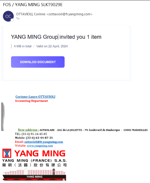 Έχει ήδη γίνει επικοινωνία με το αντίστοιχο τμήμα ΙΤ της Yangming και μας ανέφεραν ότι είναι απόπειρα phishing email και το διερευνούν.