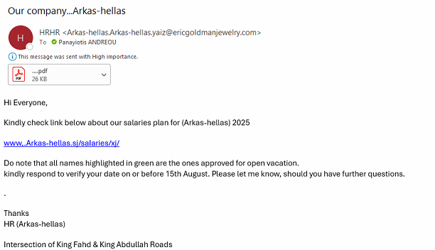 Προσοχή σε παραπλανητικά μηνύματα όπως το παρακάτω. Προσέχουμε πάντα το email του αποστολέα, δεν ανοίγουμε επισυνάψεις και δεν πατάμε σε link. Δεν κάνουμε κάποια ενέργεια και διαγράφουμε το μήνυμα.