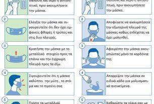 Yπενθύμιση οδηγιών για σωστή χρήση μάσκας, κατόπιν ενημέρωσης από τη Ιατρό Εργασίας.