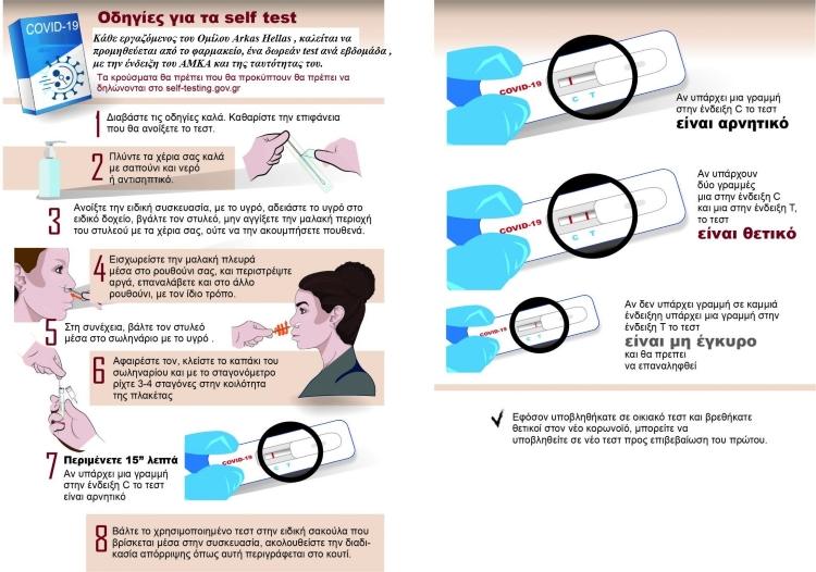Υπενθυμίζουμε την υποχρεωτική χρήση του self-test ,και την δήλωση των αποτελεσμάτων στην πλατφόρμα στο Π.Σ. “ΕΡΓΑΝΗ”. Μην ξεχνάτε να προμηθευτείτε τo self -test και από τα φαρμακεία.