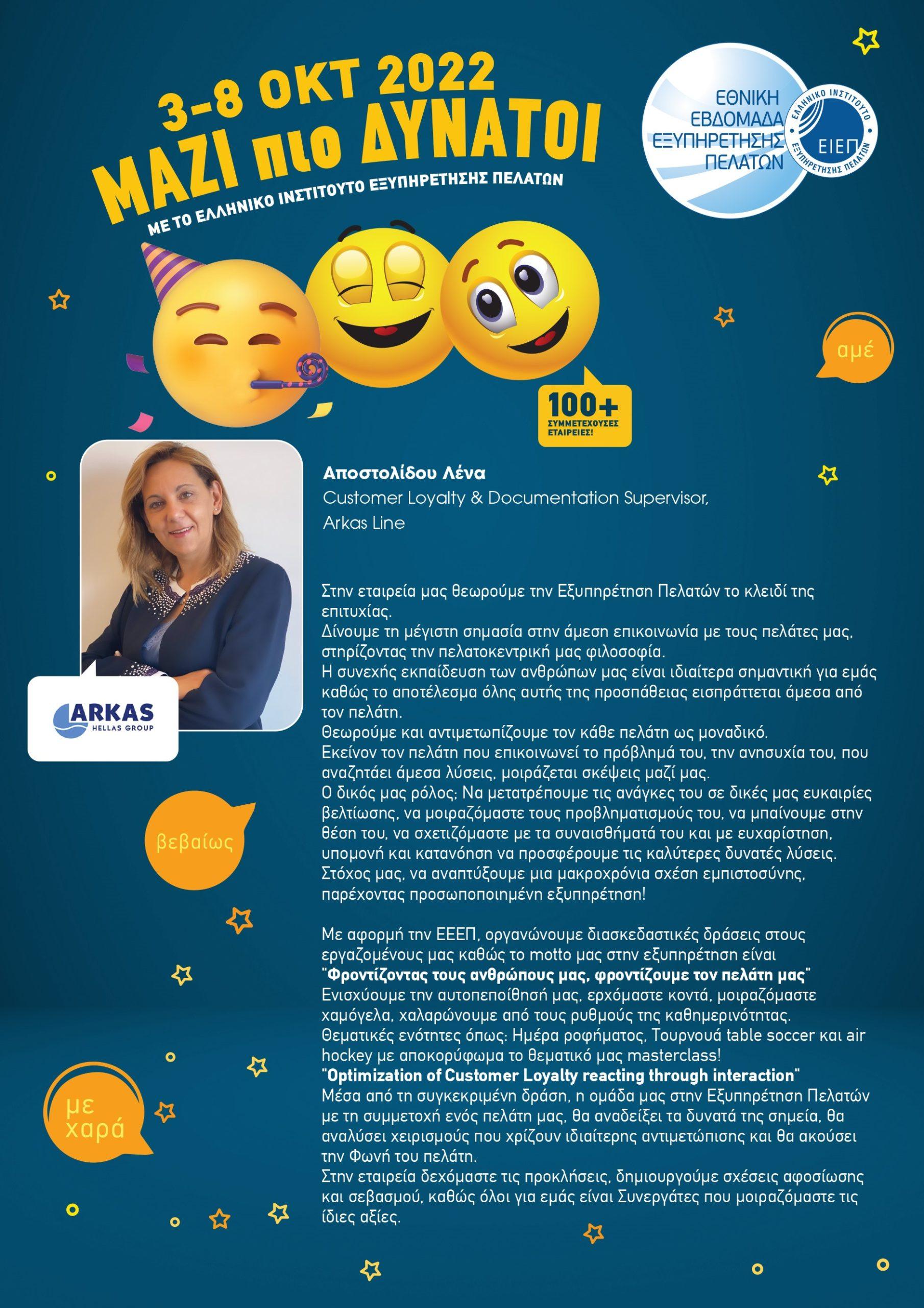Συνέντευξη της Λένας Αποστολίδου, Customer Loyalty & Documentation Supervisor της Arkas Line, στο ΕΙΕΠ