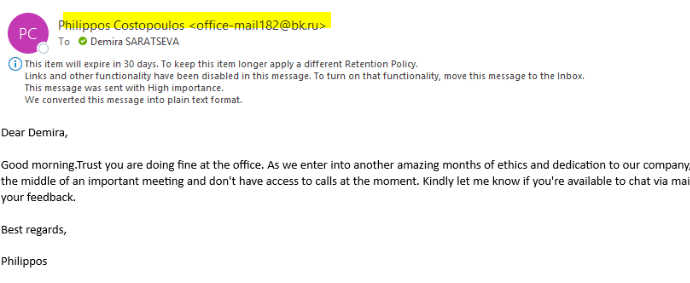 Προσοχή σε παραπλανητικά μηνύματα όπως το παρακάτω. Προσέχουμε πάντα το email του αποστολέα. Δεν κάνουμε κάποια ενέργεια και διαγράφουμε το μήνυμα και κάνουμε block το email του αποστολέα.