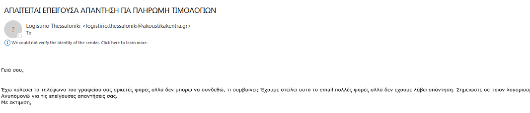 Παρακαλούμε σε περίπτωση που λαβετε παρόμοιο email να το διαγράψετε αμέσως.