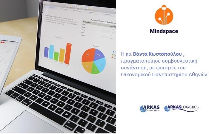 Η κα Κωστοπούλου Managing Director της Αrkas Hellas και Arkas Logistics ,προσέφερε την πολύτιμη καθοδήγησή της, σε φοιτητές Πληροφορικής του Οικονομικού Πανεπιστημίου Αθηνών που συμμετέχουν στον διαγωνισμό του MINDSPACE με θέμα “Transport and Logistics”.